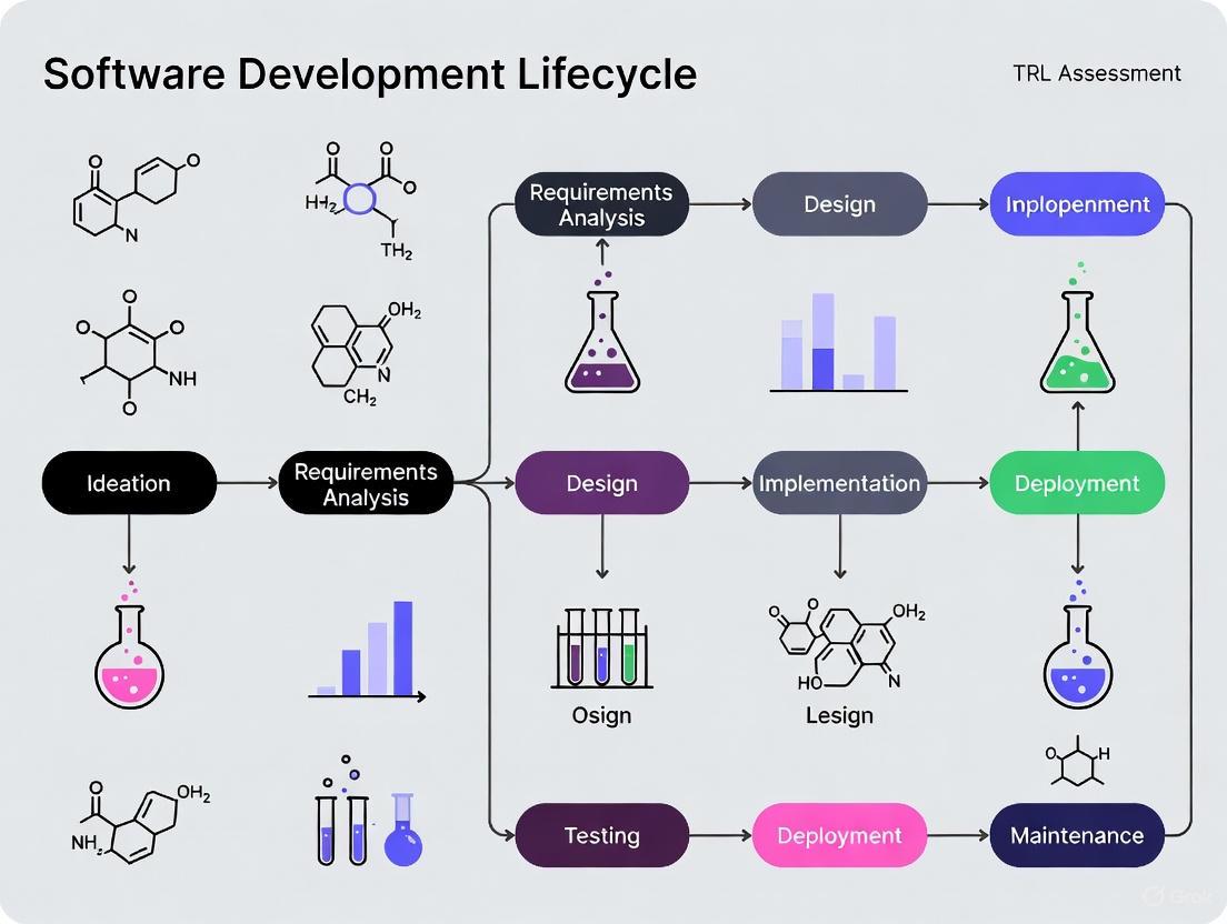 Integrating TRL assessment within the forensic software development lifecycle requires a phased experimental and validation protocol. The following workflow delineates the key assessment activities for each major development phase.
